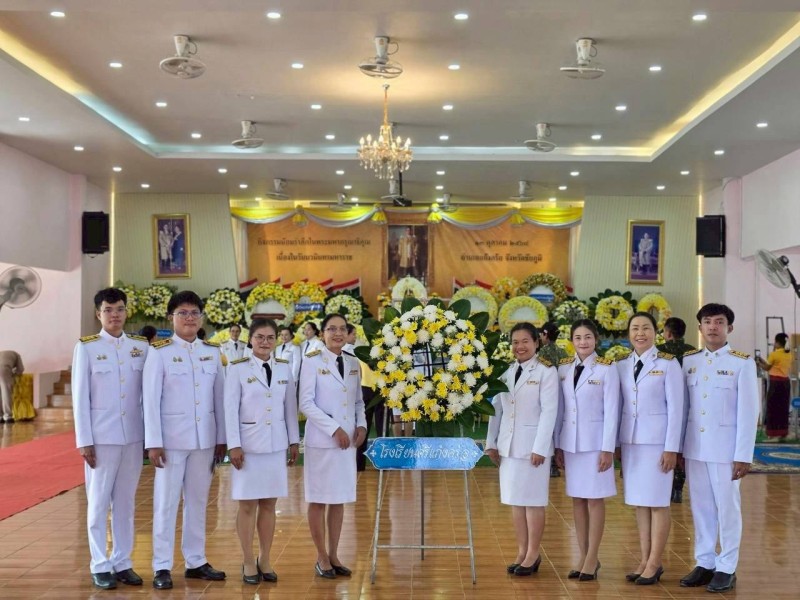 ดร.วุฒิพงษ์ วงษ์ชู ผู้อำนวยการโรงเรียนศรีแก้งคร้อ มอบหมายนายชูเกียรติ แสงเฟือง รองผู้อำนวยการโรงเรียน คณะครูและบุคลากรทางการศึกษา โรงเรียนศรีแก้งคร้อ ร่วมกิจกรรมน้อมรำลึก เนื่องในวันคล้ายวันสวรรคต พระบาทสมเด็จพระบรมชนกาธิเบศ มหาภูมิพลอดุลยเดชมหาราช บรมนาถบพิตร 13 ตุลาคม 2568 "วันนวมินทรมหาราช" เวลา 7.00 น. กิจกรรมพิธีเจริญพระพุทธมนต์และทำบุญตักบาตร และเวลา 09.00 น. พิธีวางพวงมาลาถวายราชสักการะ โดยมี นายปรัตถกร บุสาวรรณกร นายอำเภอแก้งคร้อ เป็นประธานในพิธี                         		 |