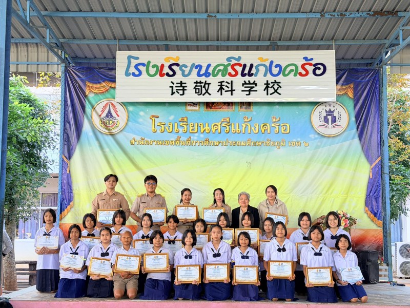 ขอขอบคุณคณะผู้บริหาร คณะครูผู้ฝึกสอน นักเรียนทุกคน และท่านผู้ปกครองที่ให้การสนับสนุน จนทำให้เกิดความสำเร็จในครั้งนี้ "แก้งคร้อก้าวไกล สร้างเด็กไทยสู่ความเป็นเลิศ" |