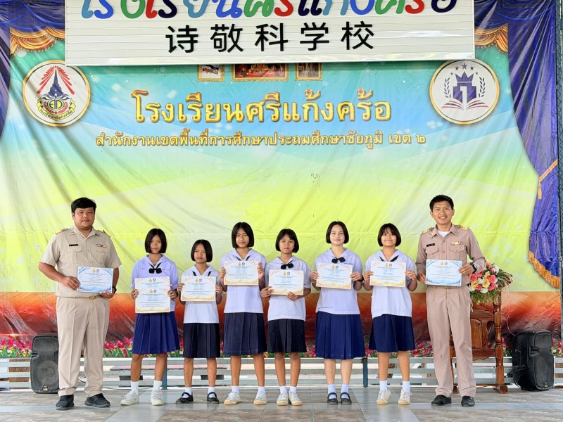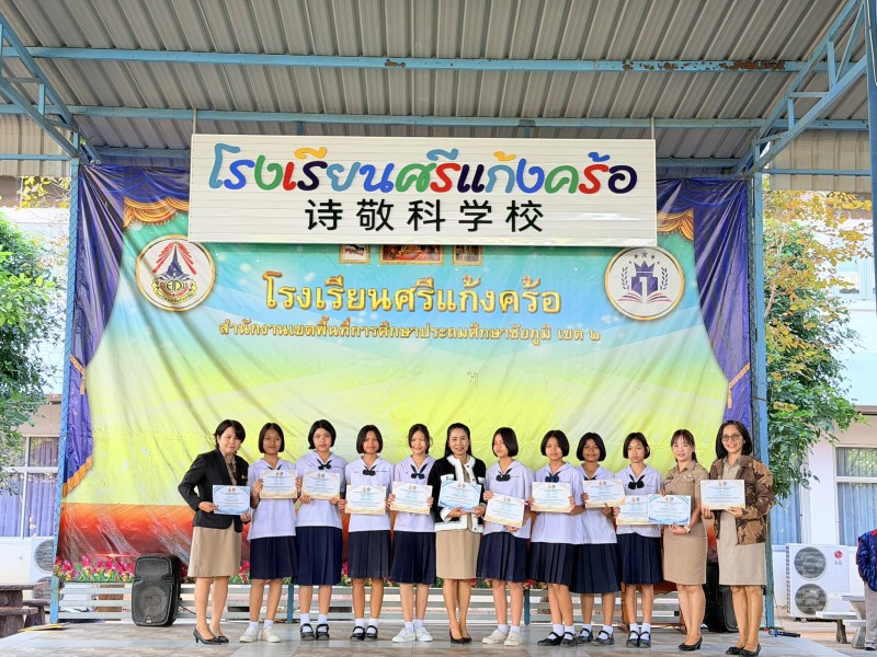 โรงเรียนแก้งคร้อขอแสดงความชื่นชมและยินดีกับคณะครูและนักเรียนที่เป็นตัวแทนเข้าร่วมการแข่งขัน ซึ่งสร้างชื่อเสียงให้กับสถานศึกษาด้วยผลงานอันยอดเยี่ยม ดังนี้: